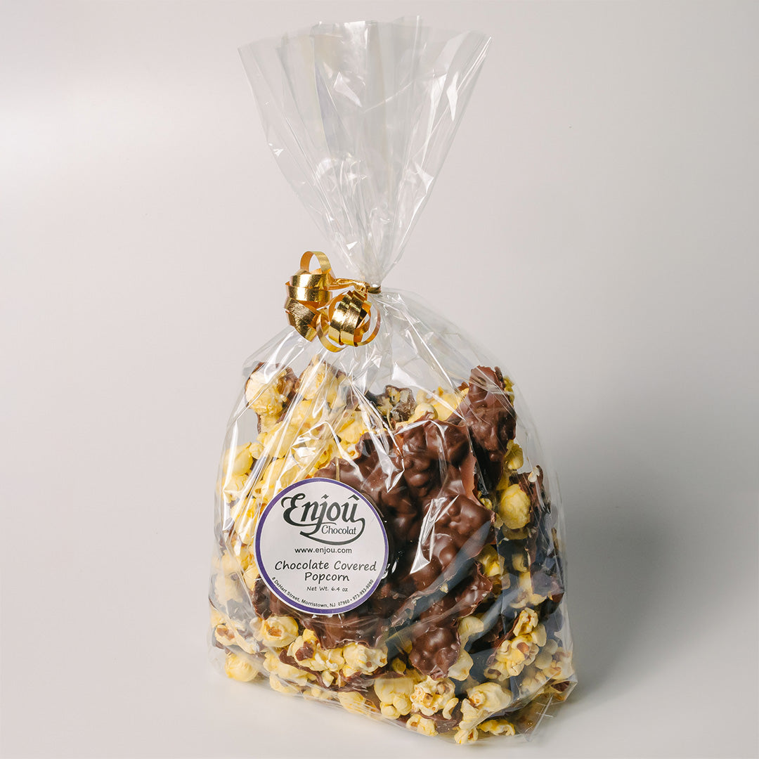 Indulge in Enjou's chocolate covered popcorn, a deliciously unique treat that combines the creaminess of milk chocolate with the satisfying buttery crunch of popcorn. Perfect for satisfying your sweet and savory cravings, this snack is sure to become your new guilty pleasure!