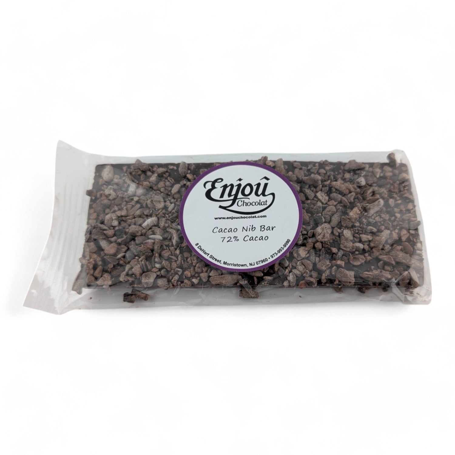 Delicious 72% high cocoa dark chocolate Bar with Cacao Nibs. These bars are always made in small batches, always made fresh!