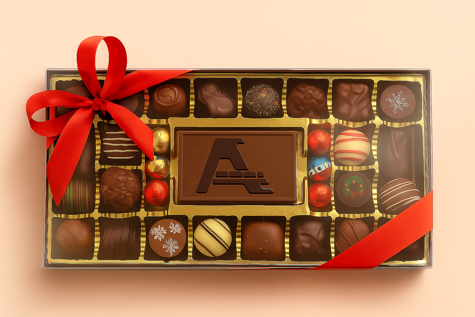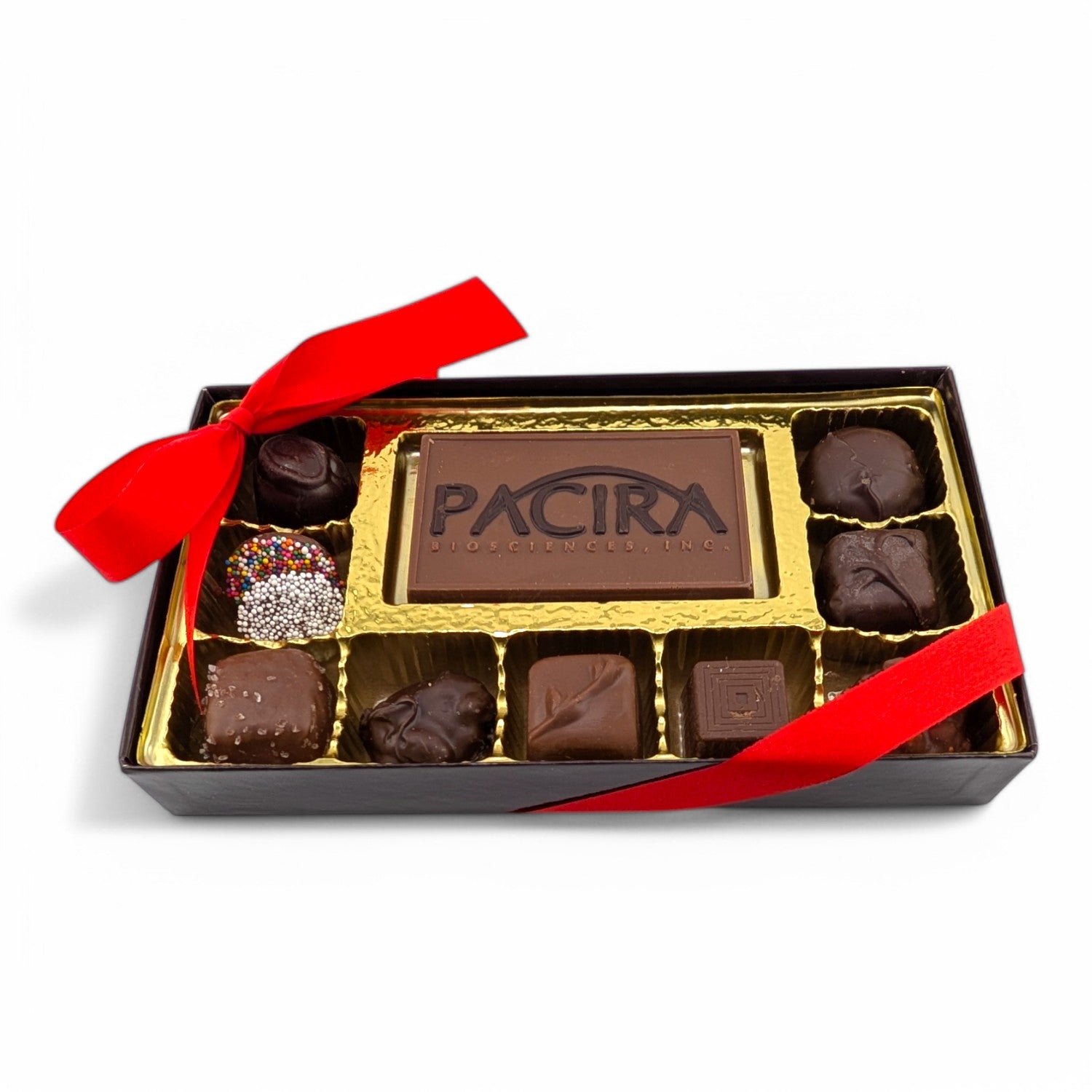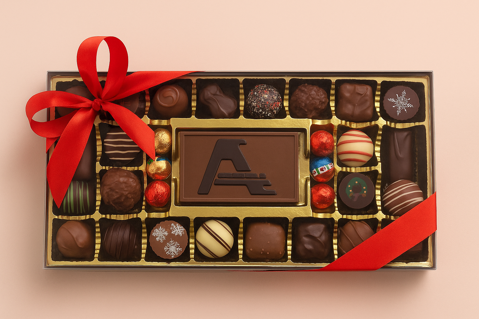 Impressive chocolates...custom reproductions of your company name, logo or emblem...a tasteful and elegant business statement for clients, employees and business associates! Let Enjoû hand-sculpt your corporate logo in our finest milk, dark-sweet or white chocolate to your specific needs and requirements. Just the thing for holiday gift-giving, and end-of-year giveaway, company banquet, awards dinner, or just to say "Thank You" for a job well done!