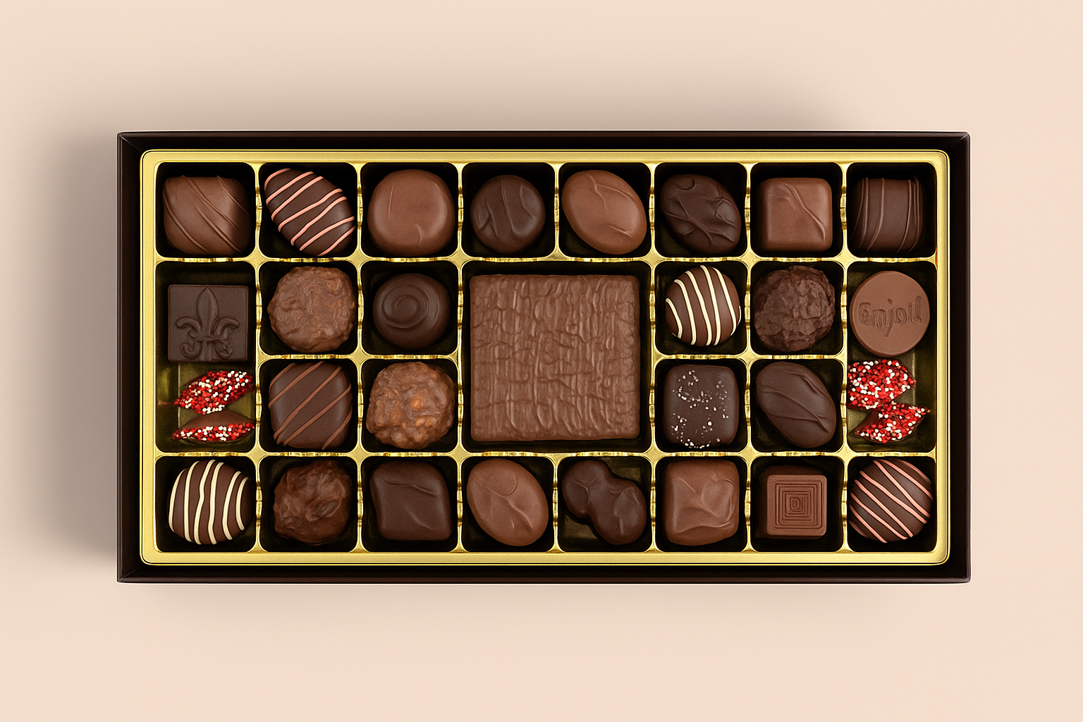Enjoy our Largest Connoisseur Collection by adding your logo a Chocolate Mold Business Card in a special fitting box and tray combination.  Two full layers of chocolate weighing over two pounds.  Initial fee applies for mold.  Gift Shipping & Logistics available