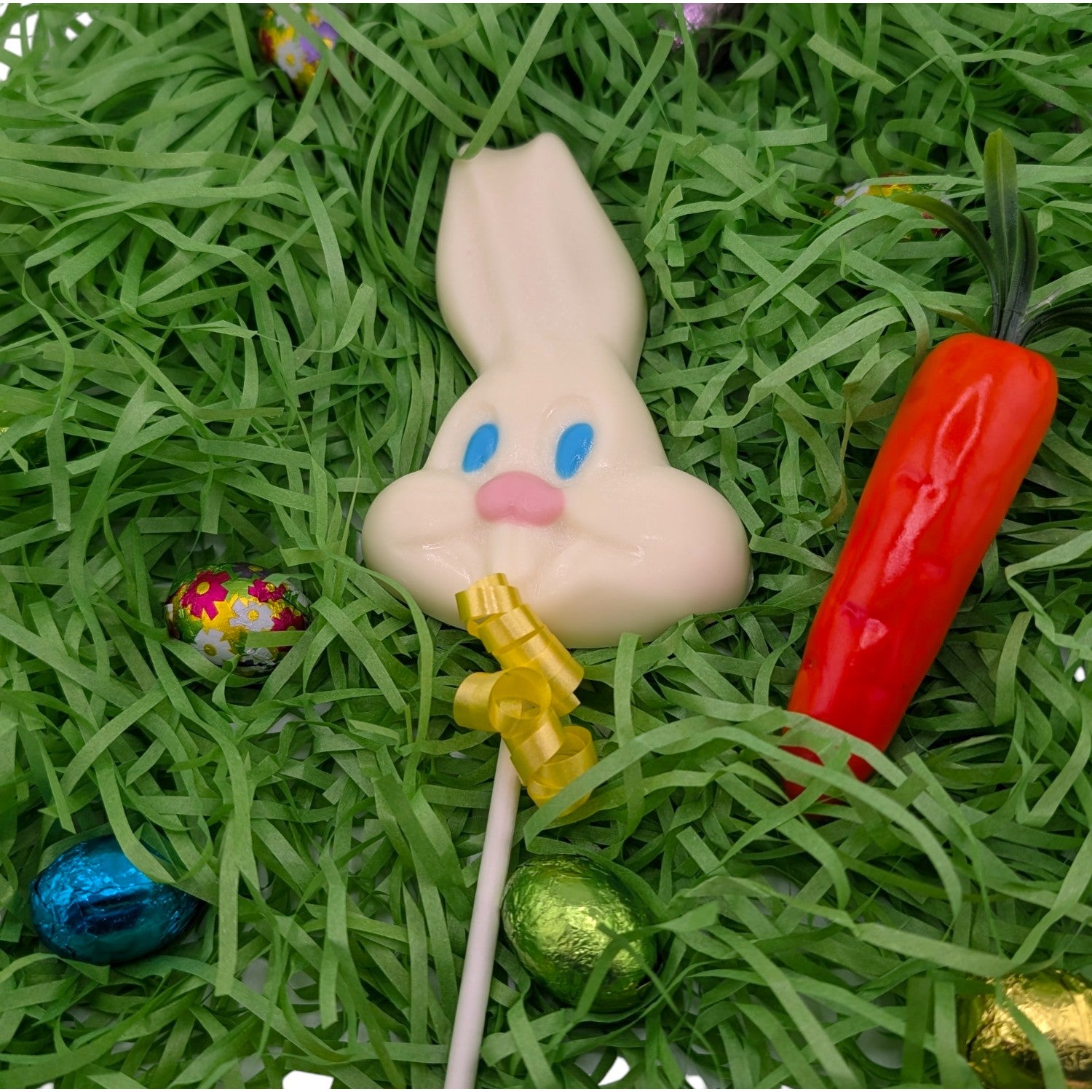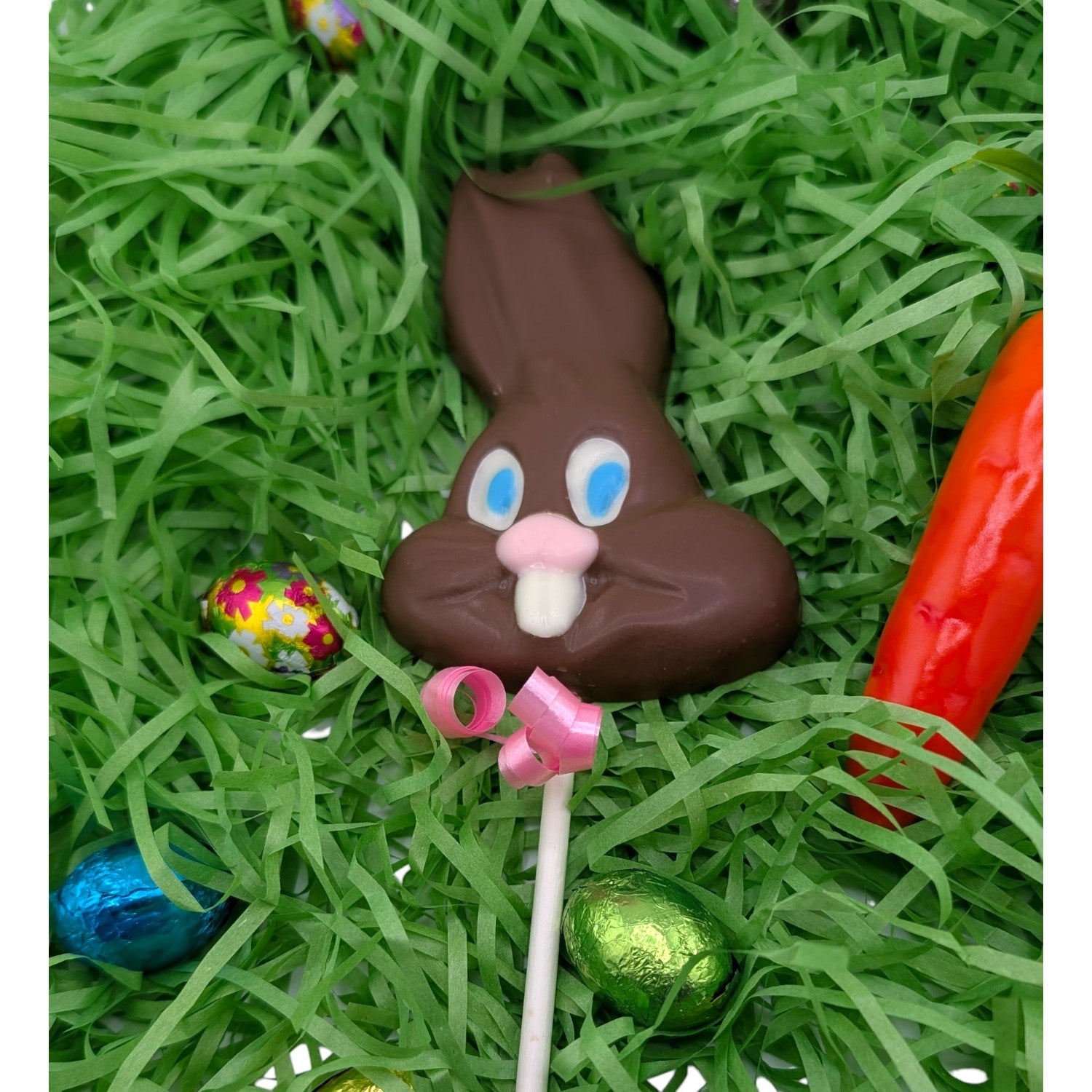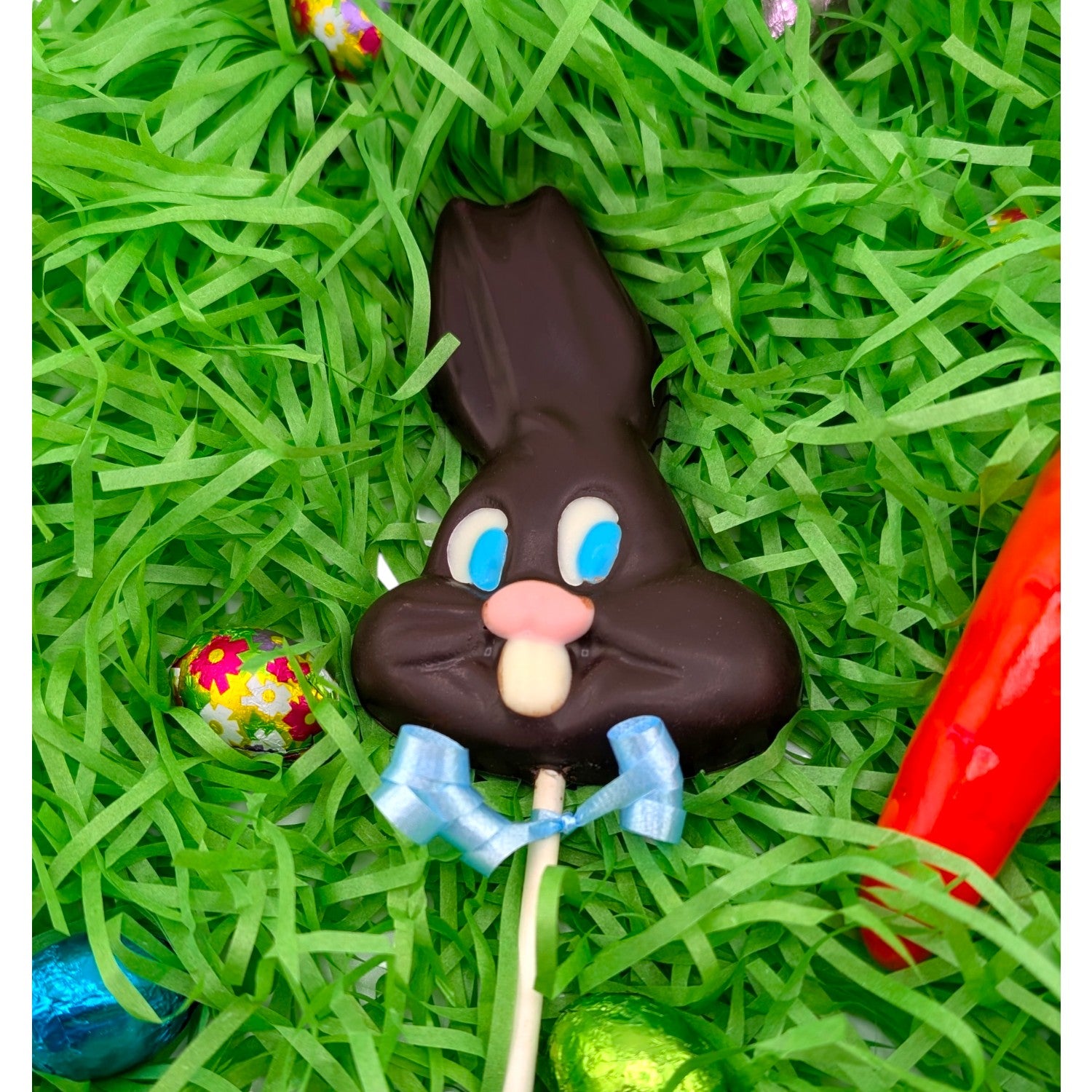 A Bugs Bunny lollipop that's great for Easter. Measures approximately 4 inches tall and has 2 oz. of our premium chocolate.
