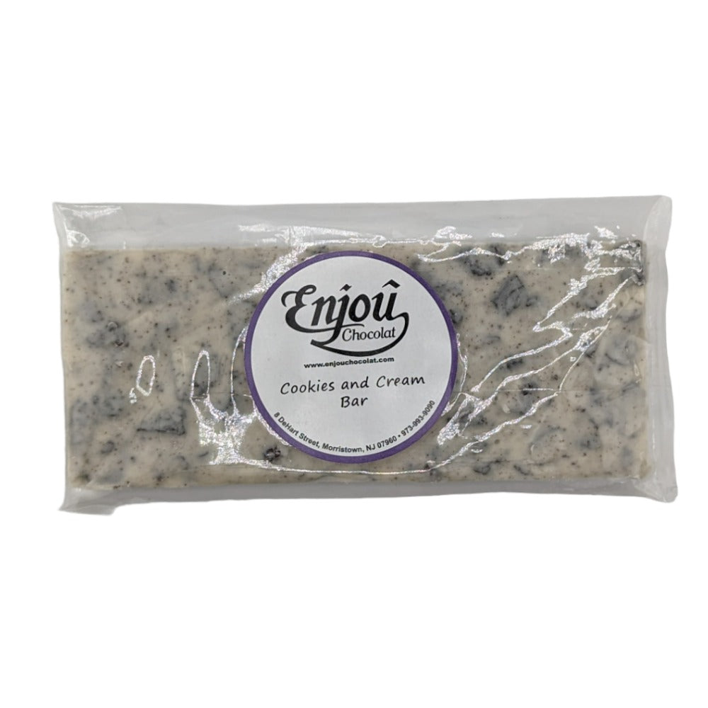 Indulge in the ultimate treat... Enjou's cookies & cream bar! Satisfy your sweet tooth with a creamy white chocolate base infused with crunchy Oreo pieces for a delicious, flavorful experience. One bite and you'll be hooked!