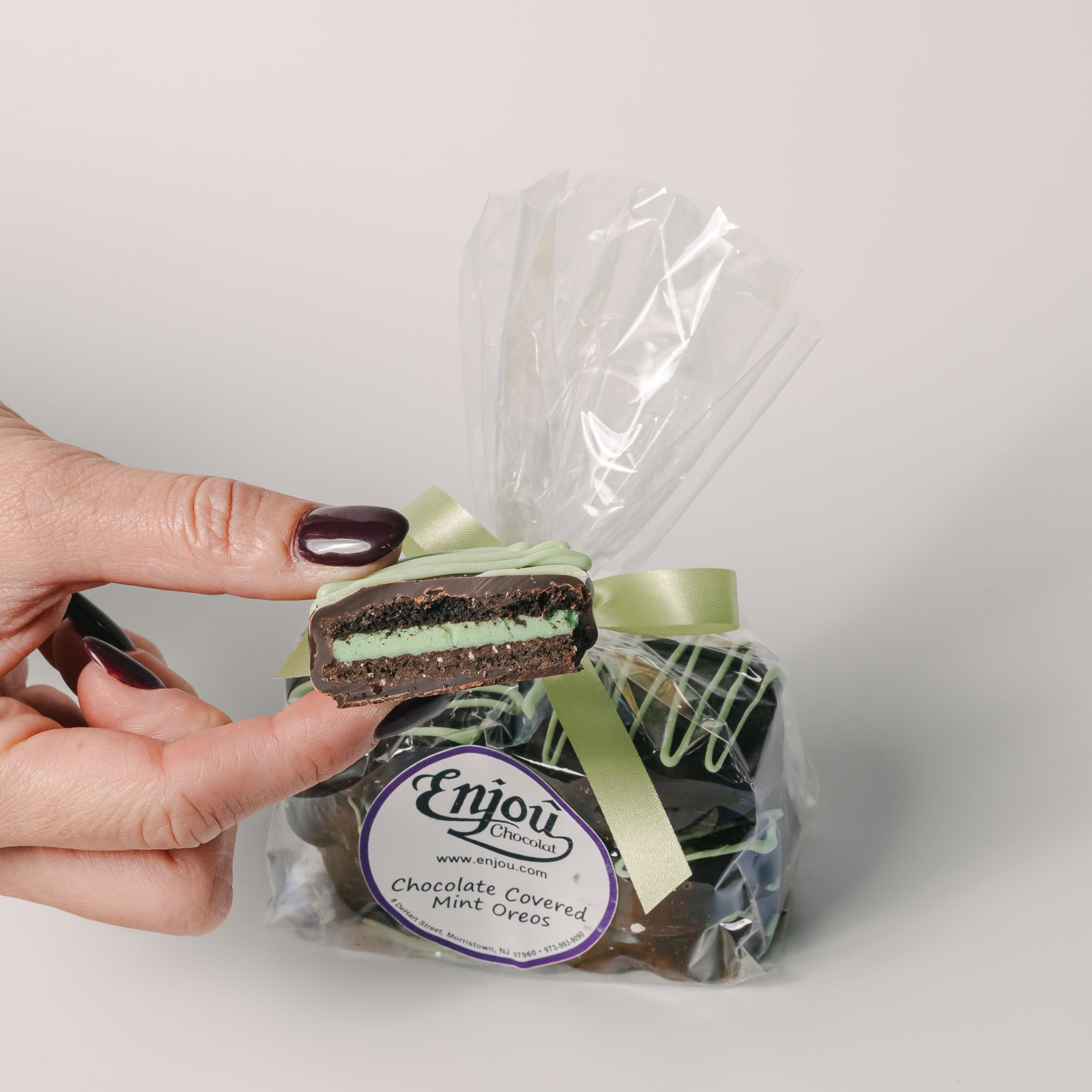 Get ready to have your taste buds tantalized with Enjou's mint chocolate covered Oreos! Everyone's favorite cookie coated in mouth-watering chocolate and filled with a refreshing mint flavor. Perfect for a sweet treat any time of day, these are sure to become your new guilty pleasure. Now available in both dark AND milk chocolate.