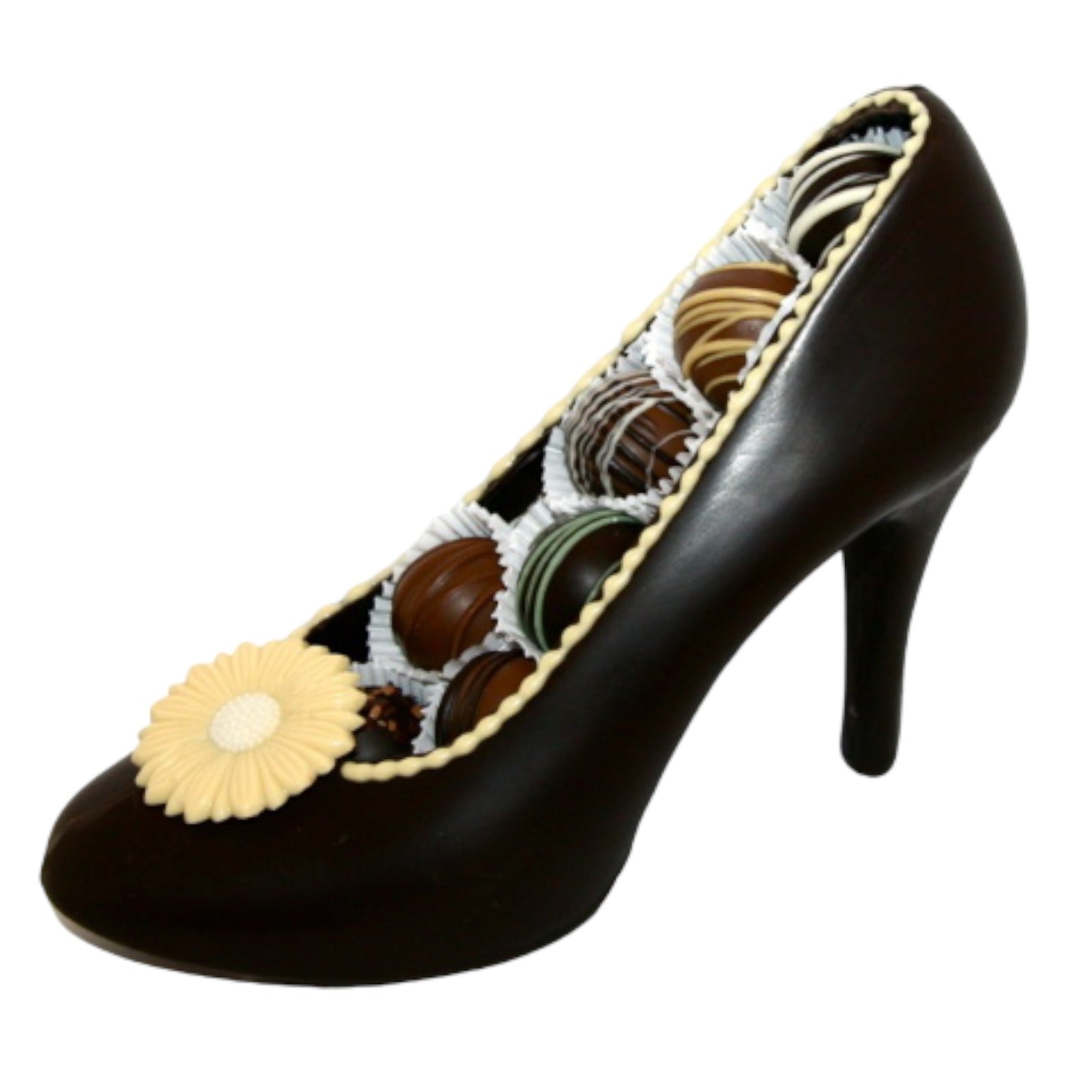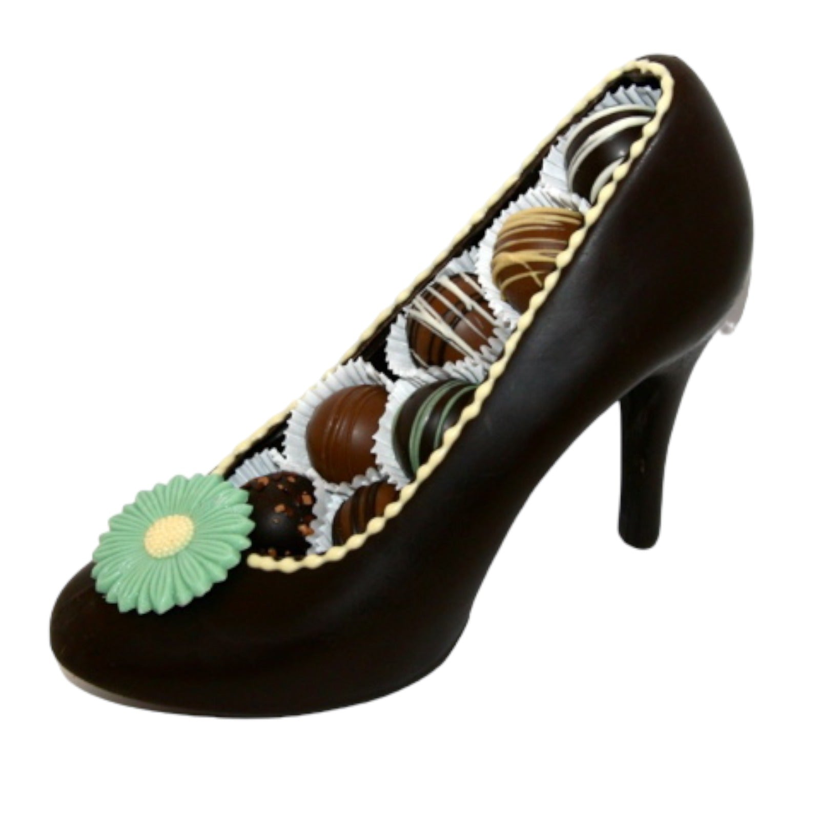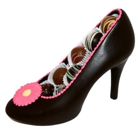 Step into Spring with this gorgeous high heel pump filled with truffles and decorated with a brilliant bloom. Approximately 5.5 inches high.