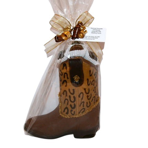 Step into high fashion with our Cowboy Boot in leopard print with gold glitter accents. Measures approximately 6.75 inches tall