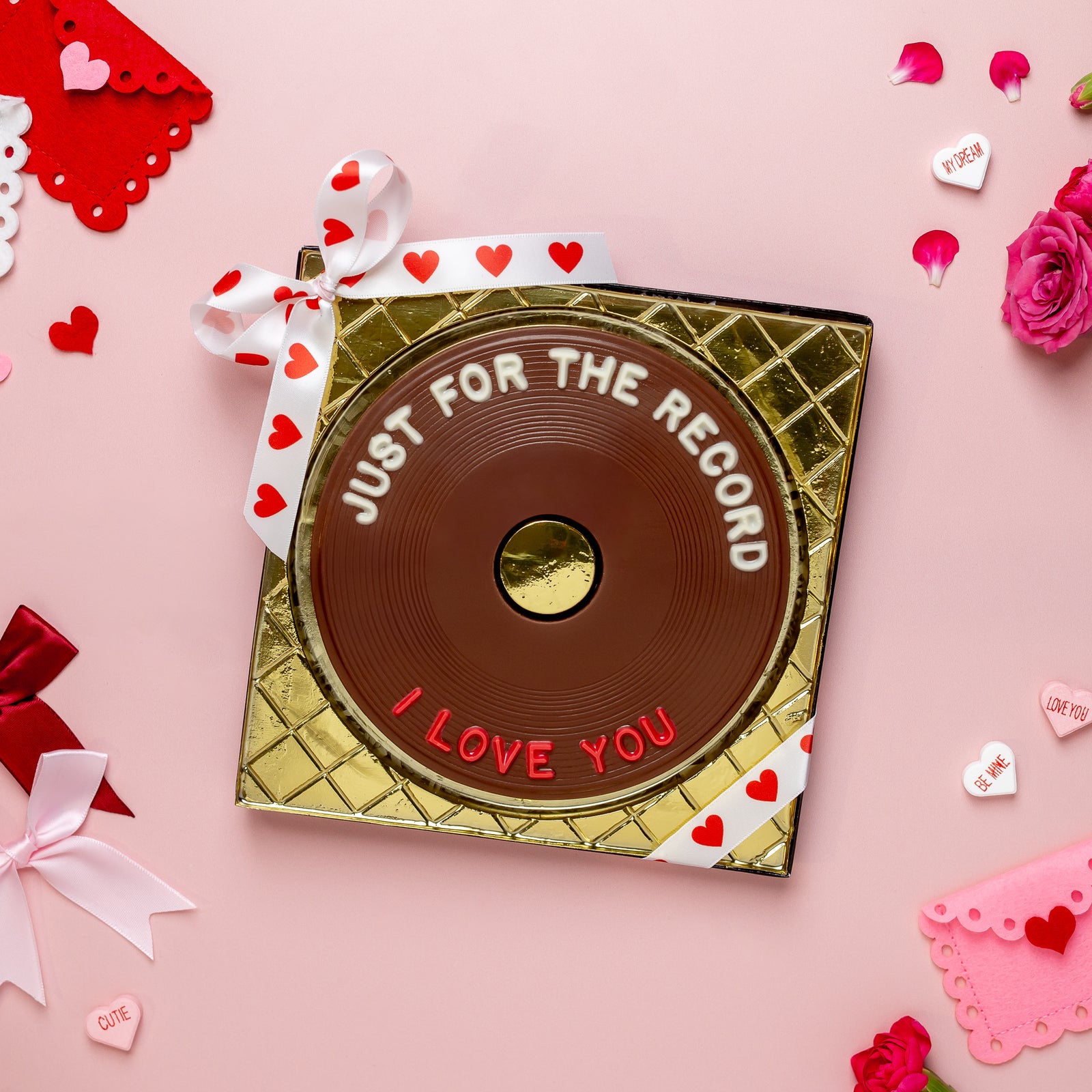 Introducing "Just for the Record", the perfect gift for your loved one. This chocolate record sends a clear message: I love you! Give a sweet record that will last longer than any song. Measures approximately 5.5 inches in diameter.
