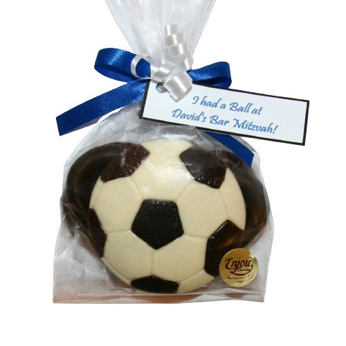 A great Bar or Bat Mitzvah favor for an athlete or sports fan. Choose either a soccer ball, basketball, or baseball, backed by two chocolate covered pretzels.