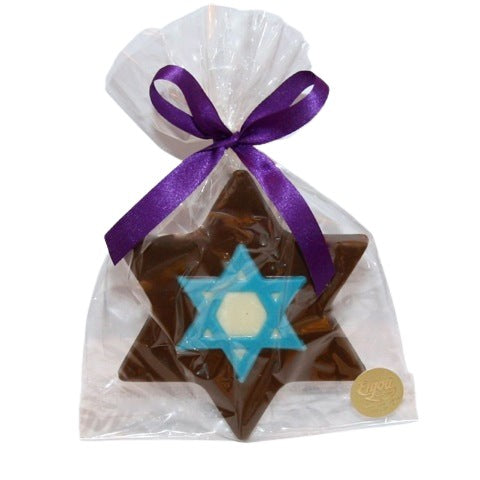 This Chocolate Jewish Star (Star of David) is a great favor for Bar or Bat Mitzvahs. Measures approximately 3.5 inches across.