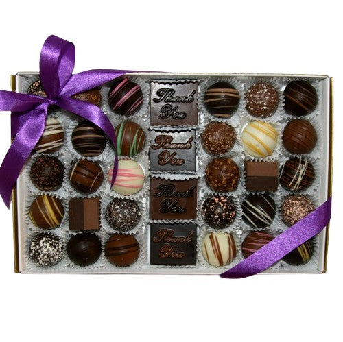 Express your Thanks with an assortment of Enjou truffles that includes solid chocolate Thank You pieces.  About 1.25 pounds