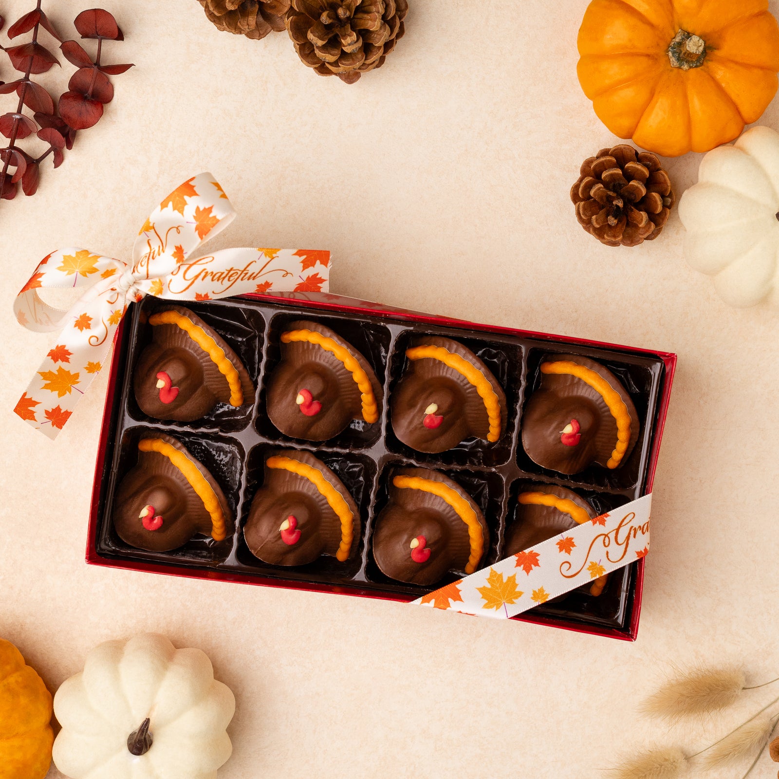 Gather with loved ones and savor the season with our Thanksgiving chocolates. Our handcrafted treats are the perfect way to add a touch of sweetness to your holiday celebrations, from chocolate turkeys to truffle cornucopias and apples.