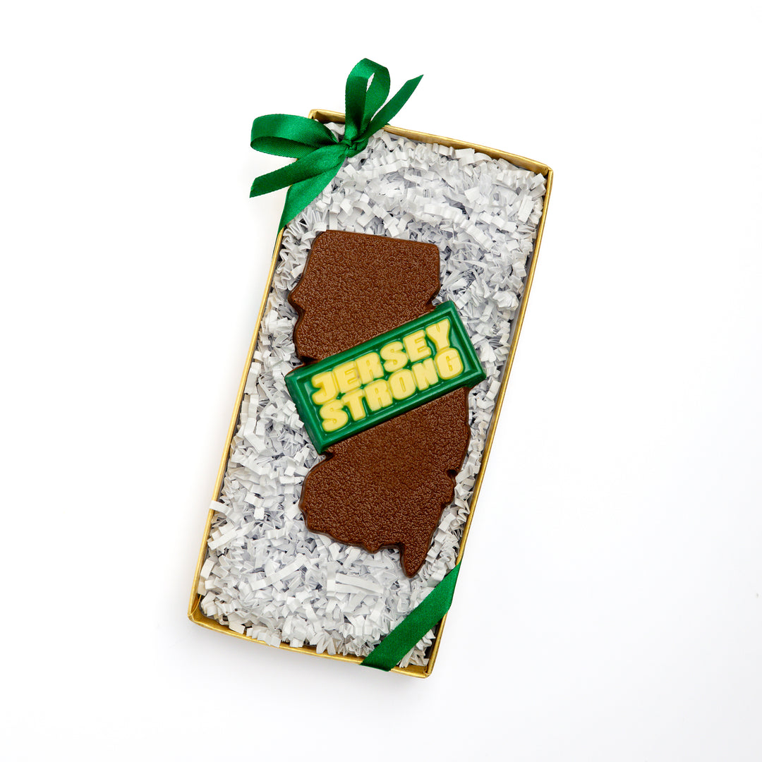 Celebrate the spirit of New Jersey with our "Jersey Strong" state bar, crafted with Enjou's rich, homemade chocolate. It’s a playful and tasty way to honor the toughness and pride of Jersey folks. Ideal for anyone who loves the Garden State or wants a sweet souvenir to remember their visit!