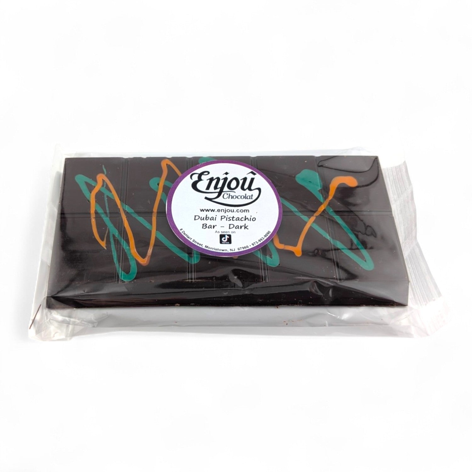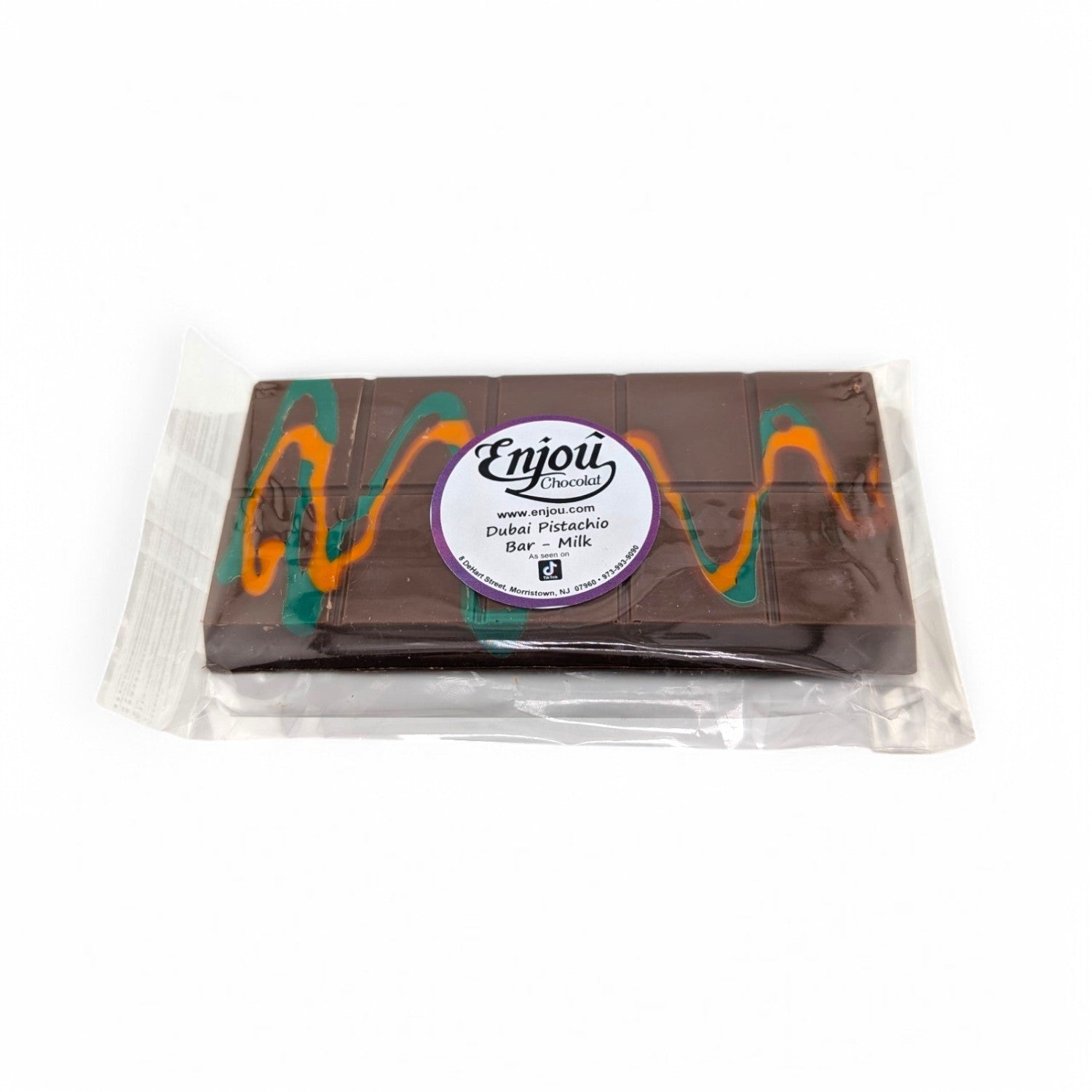 Our Dubai pistachio bar is crafted using premium ingredients, including Enjou's homemade chocolate, rich Italian pistachio cream, and crispy Greek kadaifi dough. This 7 oz. treat is perfect for indulging in alone or daring to share!