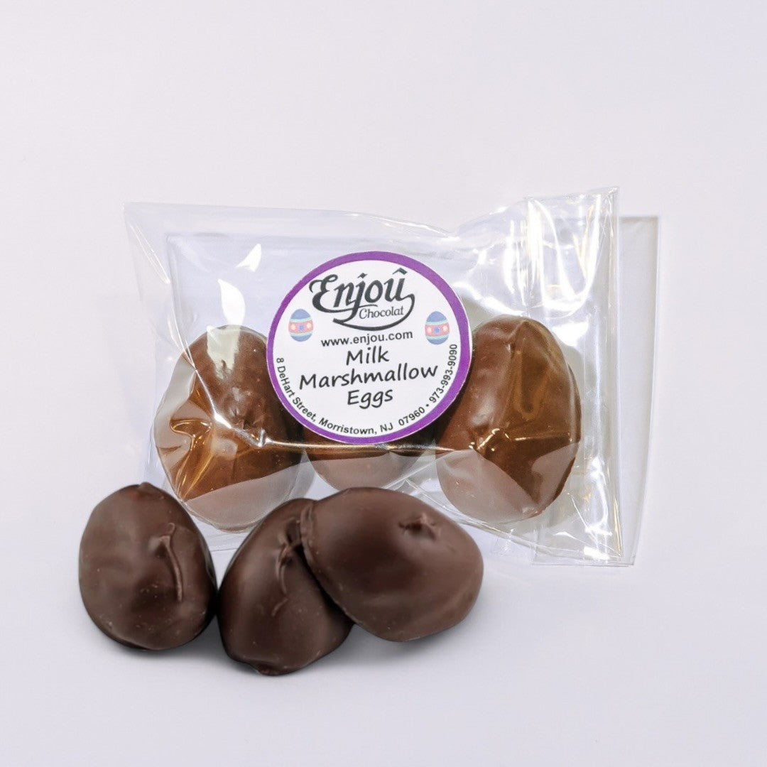 These traditional filled Easter eggs are covered in Enjou's rich, homemade chocolate. They come three to a bag and will make a great addition to any Easter basket. Choose from coconut, peanut butter, marshmallow, sea salt caramel, and vanilla buttercream (or try them all!). Each is approximately 1.75" long.