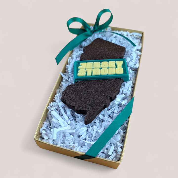 Celebrate the spirit of New Jersey with our "Jersey Strong" state bar, crafted with Enjou's rich, homemade chocolate. It’s a playful and tasty way to honor the toughness and pride of Jersey folks. Ideal for anyone who loves the Garden State or wants a sweet souvenir to remember their visit!